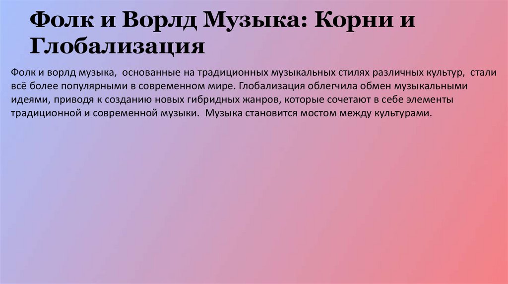 Фолк и Ворлд Музыка: Корни иГлобализация