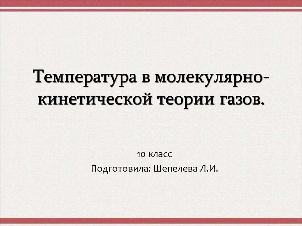 Температура в молекулярнокинетической теории газов.10 класс