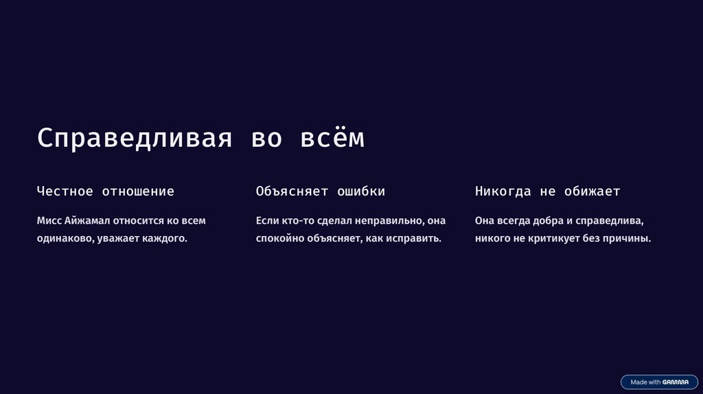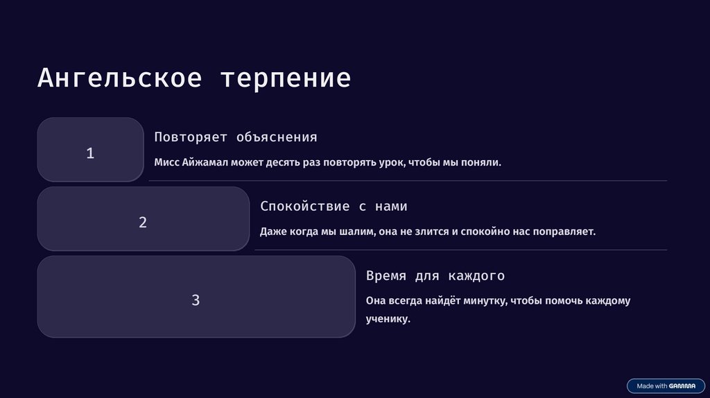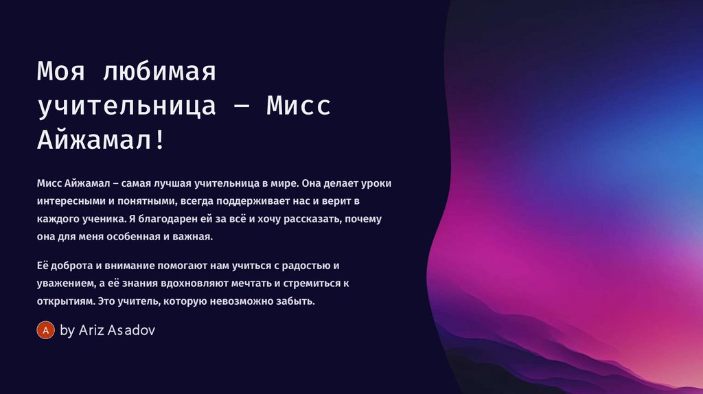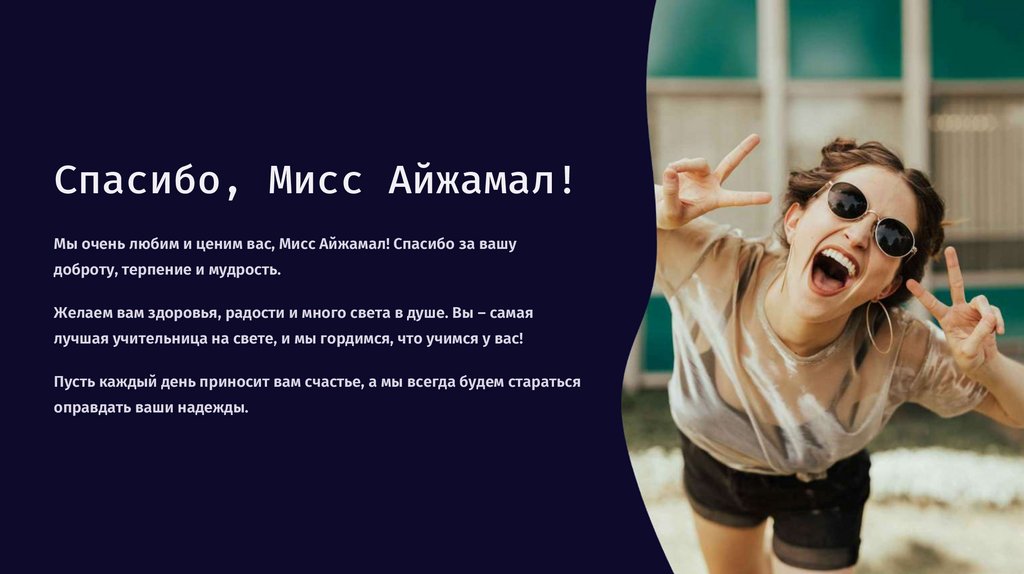 Мисс Айжамал – самая лучшая учительница в мире. Она делает уроки