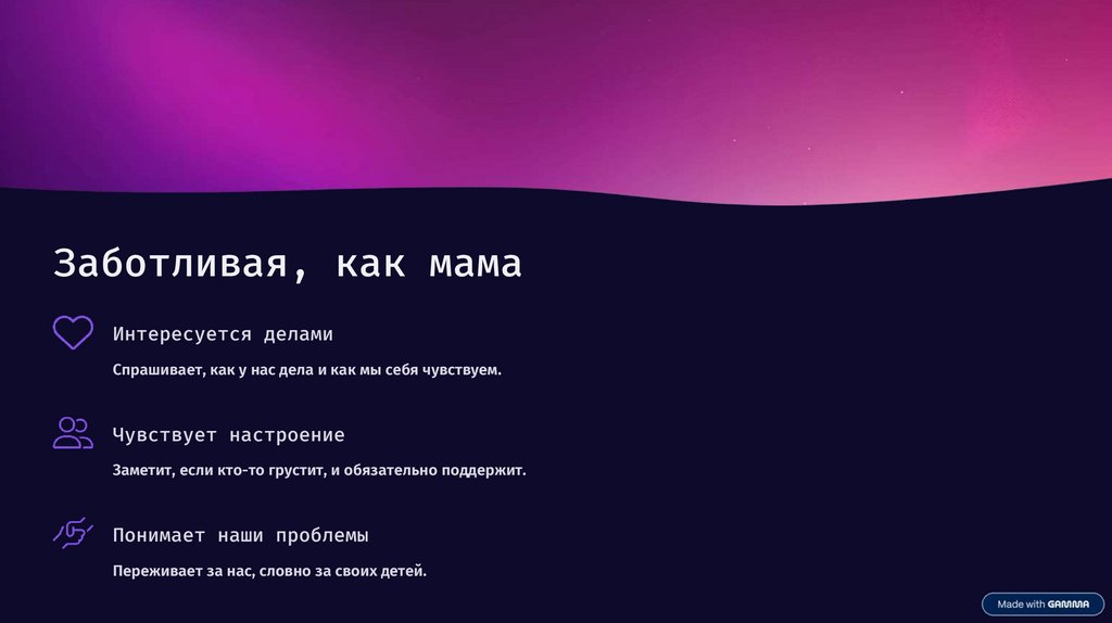 Никогда не ругает, а всегда поддерживает и вдохновляет