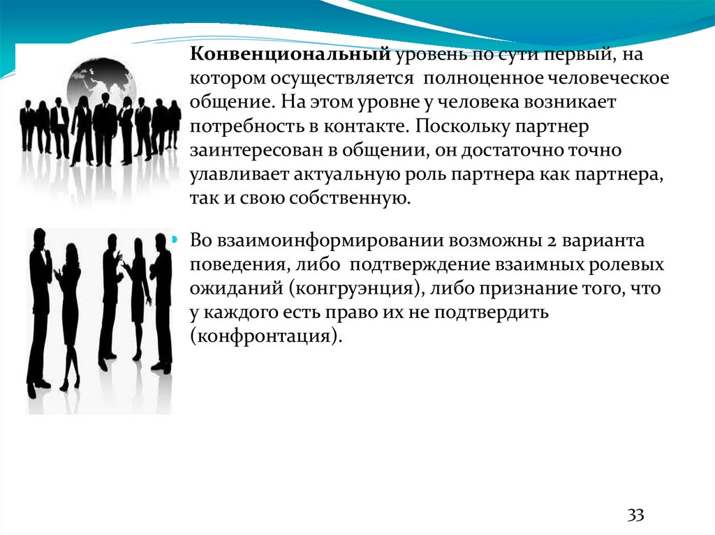 Конвенциональный уровень по сути первый, накотором осуществляется полноценное человеческое