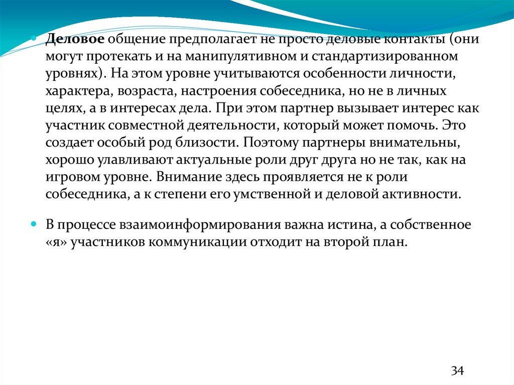 Деловое общение предполагает не просто деловые контакты (онимогут протекать и на манипулятивном и стандартизированном