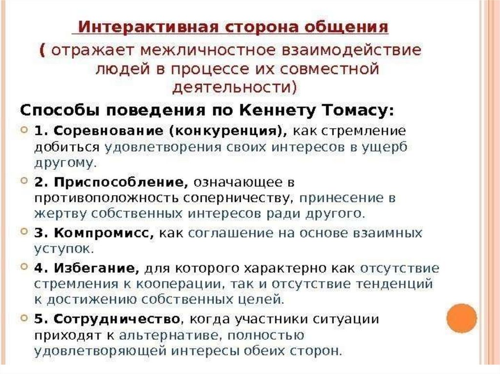 взаимодействия – сотрудничество, конфликт, соревнование, помощь,
