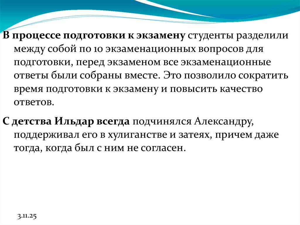 В процессе подготовки к экзамену студенты разделилимежду собой по 10 экзаменационных вопросов для