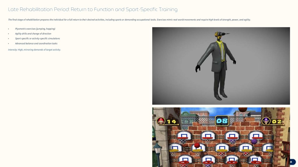 Late Rehabilitation Period: Return to Function and Sport-Specific TrainingThe final stage of rehabilitation prepares the individual for a full return to their desired activities, including sports or demanding occupational tasks. Exercises mimic real-world movements and require high levels of strength, power, and agility.