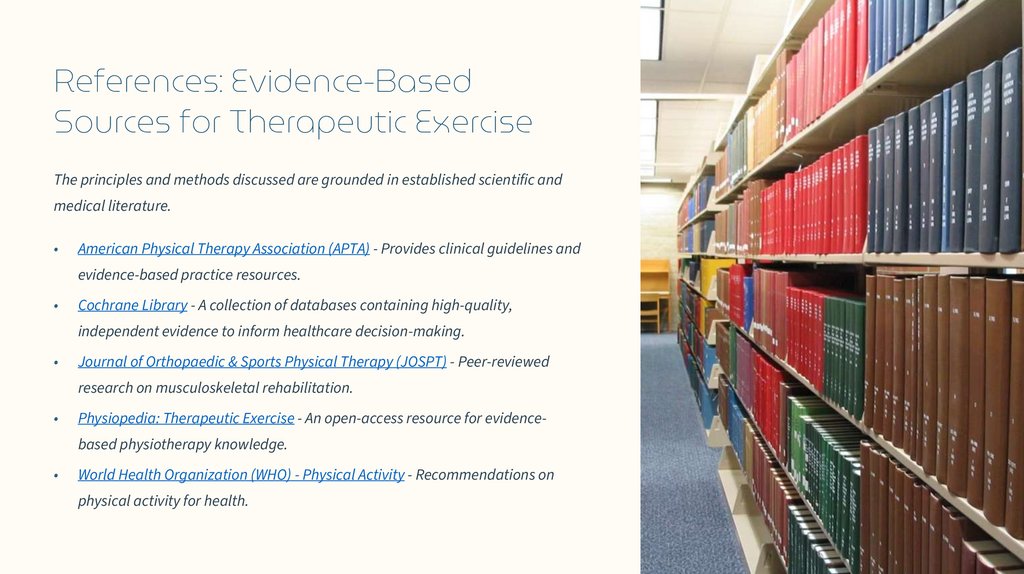 Physiopedia: Therapeutic Exercise - An open-access resource for evidencebased physiotherapy knowledge.