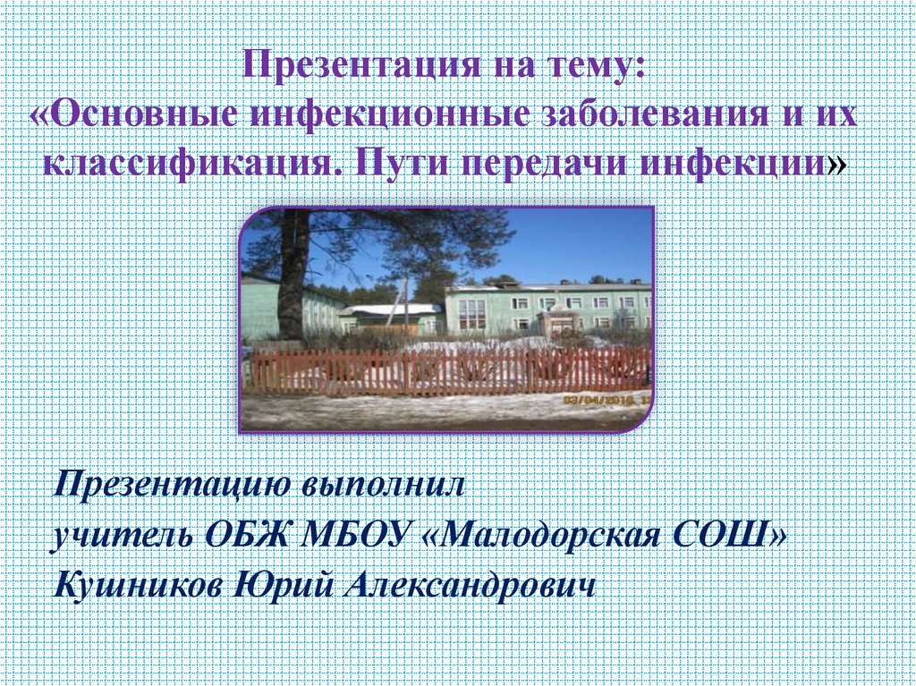 1. Презентация на тему: «Основные инфекционные заболевания и их классификация. Пути передачи инфекции»