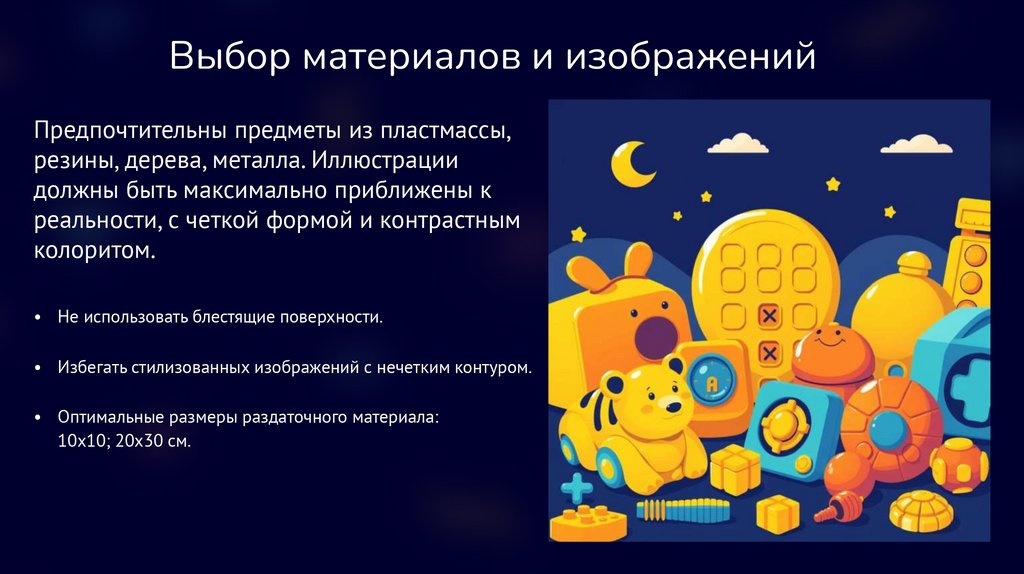 Выбор материалов и изображенийПредпочтительны предметы из пластмассы,
