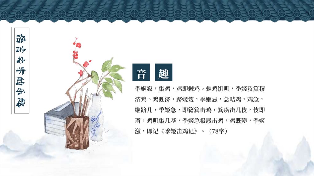 饿了叫叽叽 季姬就拿竹箕中的小米喂它们。鸡吃饱了 跳到季姬的书