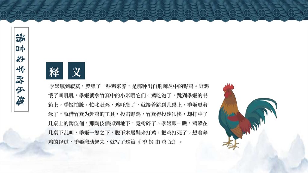 鸡的经过 季姬激动起来 就写了这篇《 季 姬 击 鸡 记》。
