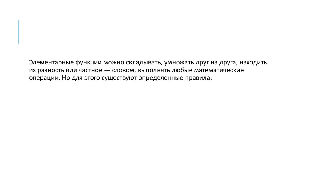 Элементарные функции можно складывать, умножать друг на друга, находитьих разность или частное — словом, выполнять любые математические