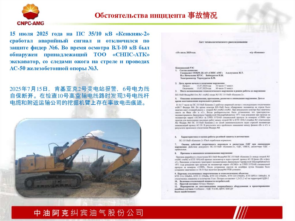 Обстоятельства инцидента 事故情况15 июля 2025 года на ПС 35/10 кВ «Кенкияк-2»