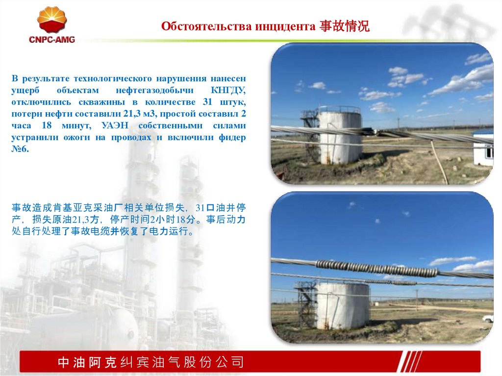Обстоятельства инцидента 事故情况В результате технологического нарушения нанесен