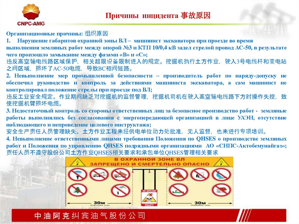 Причины инцидента 事故原因Организационные причины: 组织原因