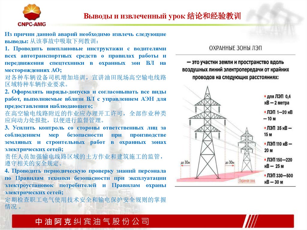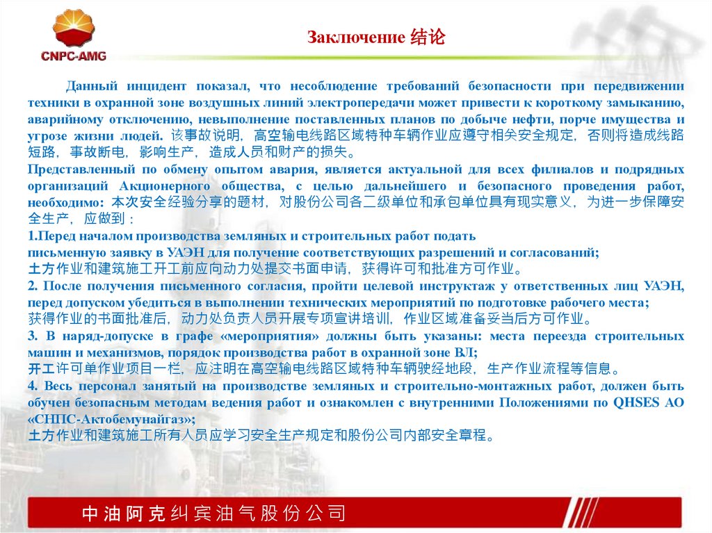 Выводы и извлеченный урок 结论和经验教训Из причин данной аварий необходимо извлечь следующие