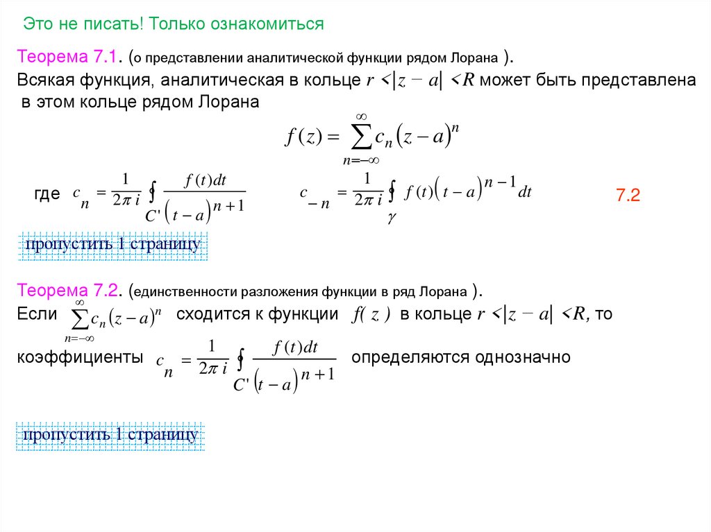 Это не писать! Только ознакомитьсяТеорема 7.1. (о представлении аналитической функции рядом Лорана ).