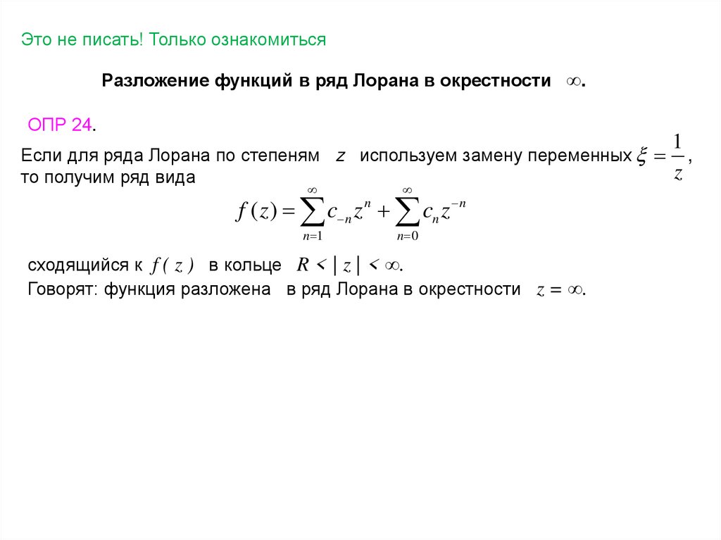 Это не писать! Только ознакомитьсяРазложение функций в ряд Лорана в окрестности ∞.