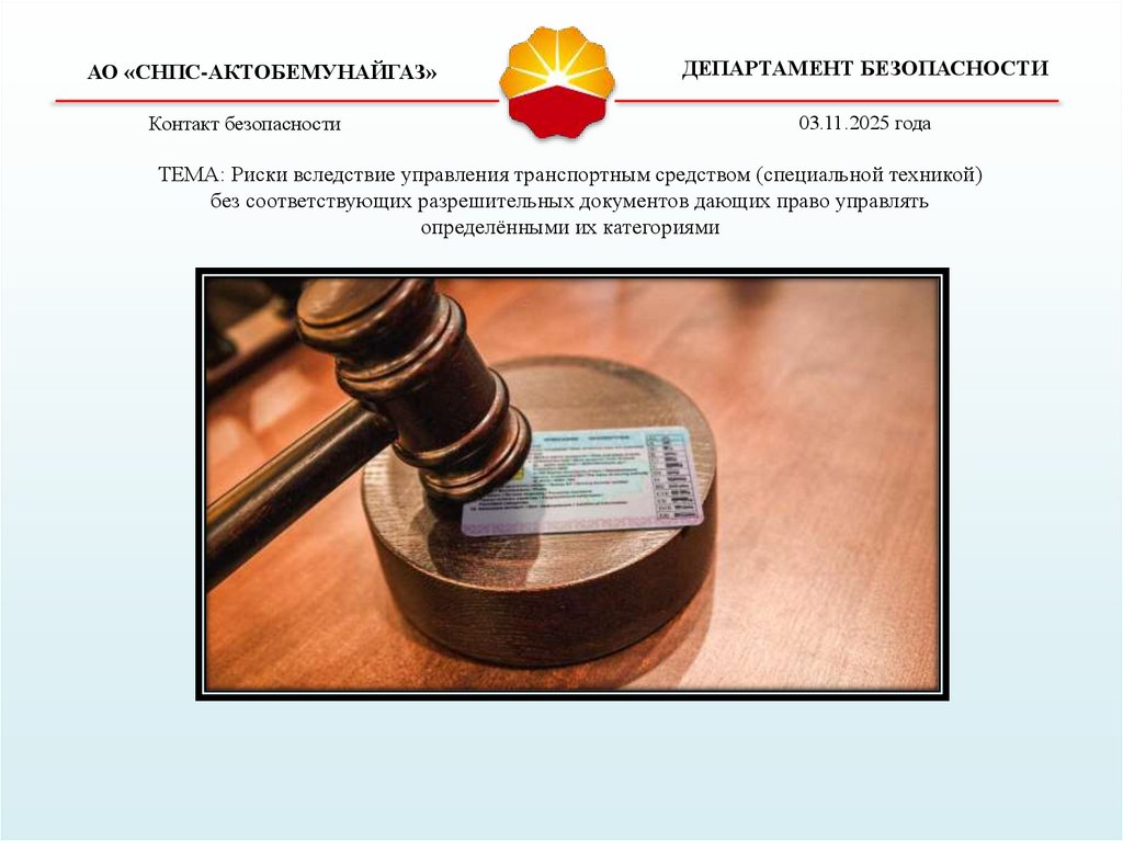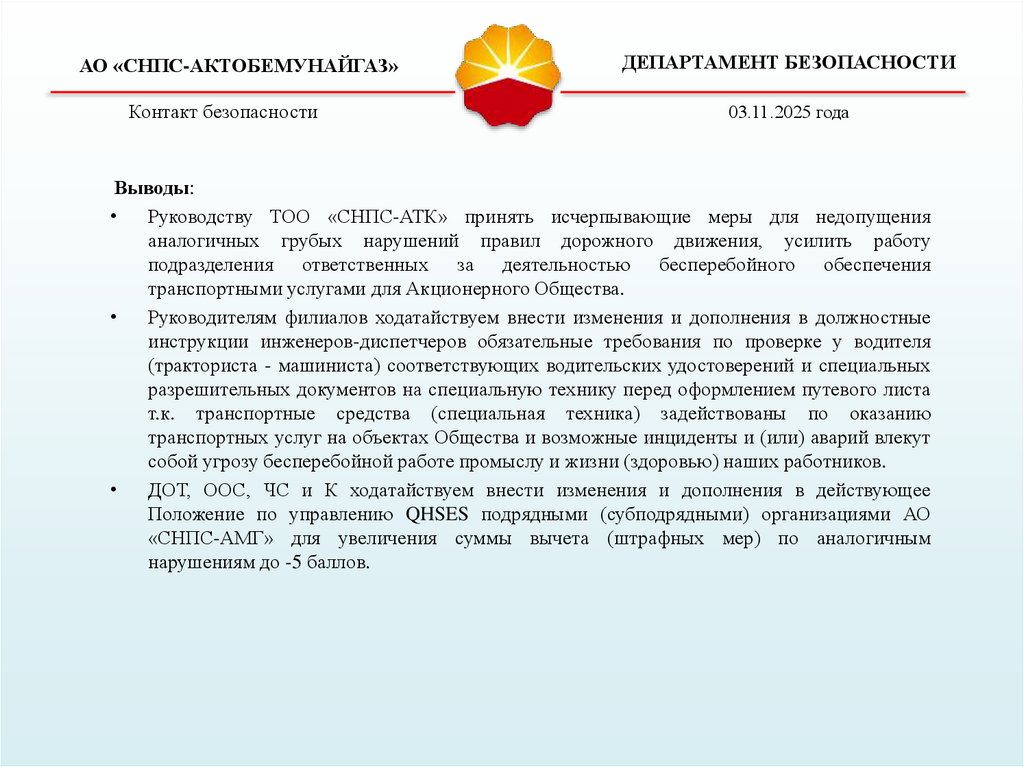 АО «СНПС-АКТОБЕМУНАЙГАЗ»ДЕПАРТАМЕНТ БЕЗОПАСНОСТИ