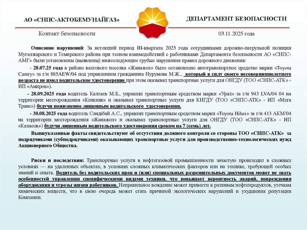 АО «СНПС-АКТОБЕМУНАЙГАЗ»Контакт безопасности