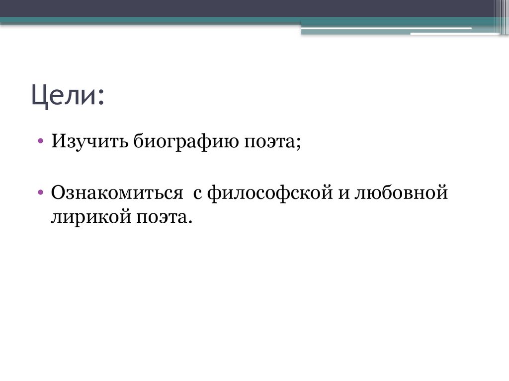 Цели:• Изучить биографию поэта;