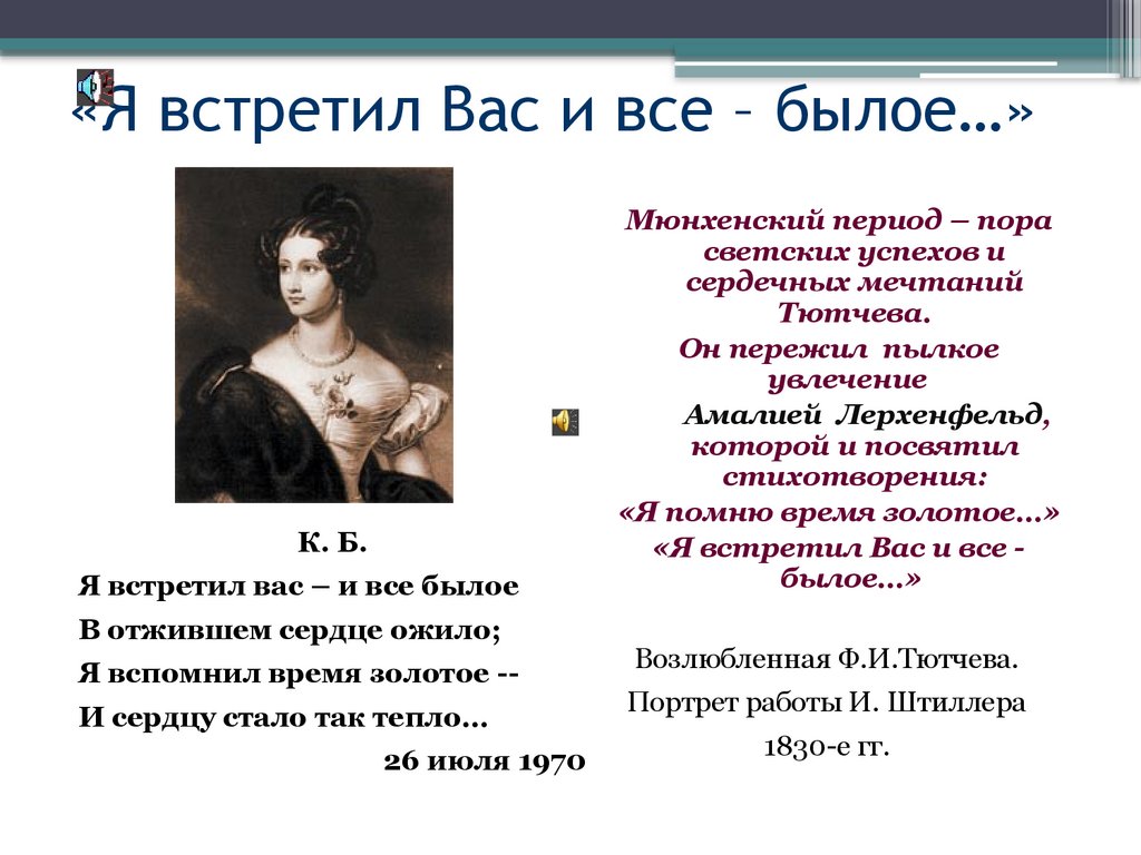 «Я встретил Вас и все – былое…»К. Б.