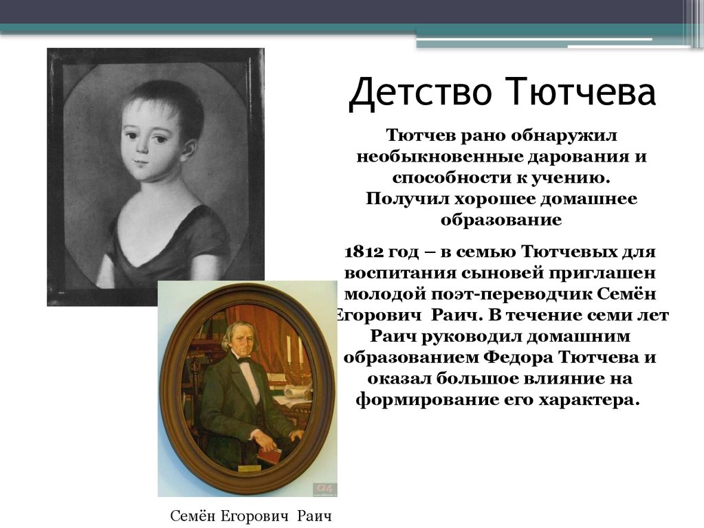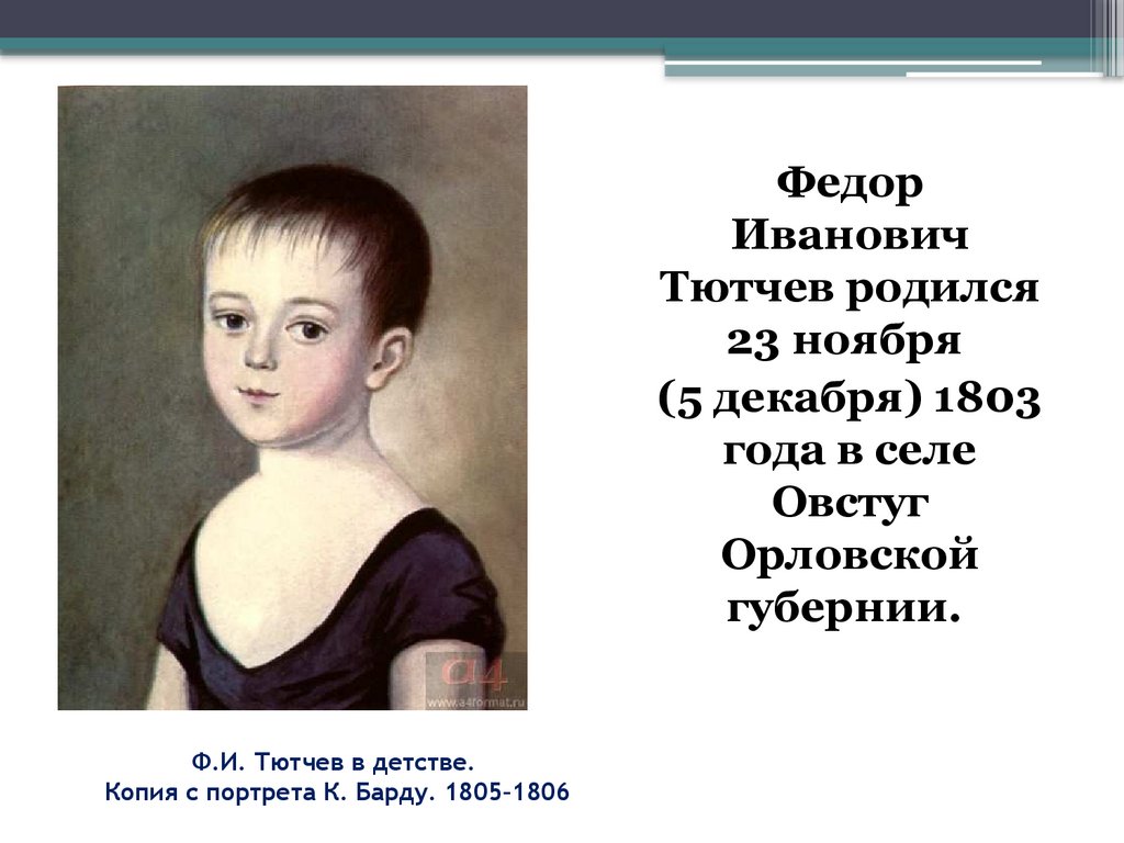 Ф.И. Тютчев в детстве.