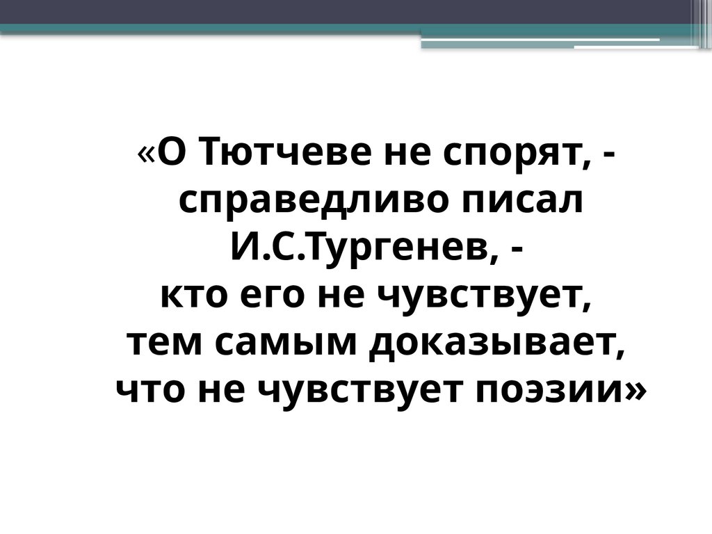 «О Тютчеве не спорят, справедливо писалИ.С.Тургенев, кто его не чувствует,
