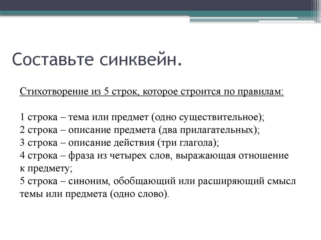 Составьте синквейн.Стихотворение из 5 строк, которое строится по правилам: