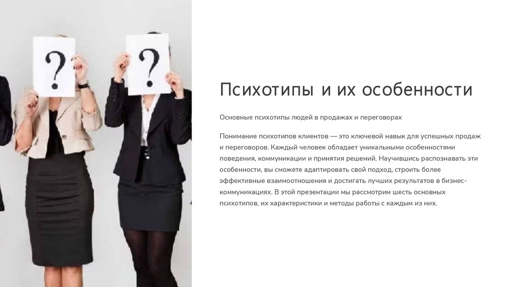 Психотипы и их особенностиОсновные психотипы людей в продажах и переговорах