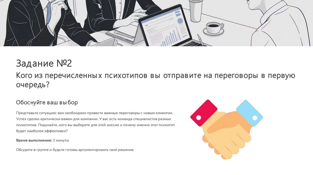 Задание №2Кого из перечисленны х психотипов в ы отправ ите на переговоры в первую