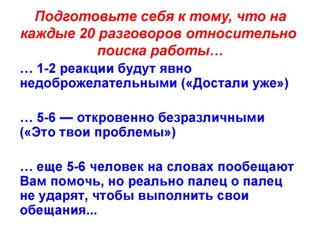 Подготовьте себя к тому, что накаждые 20 разговоров относительно
