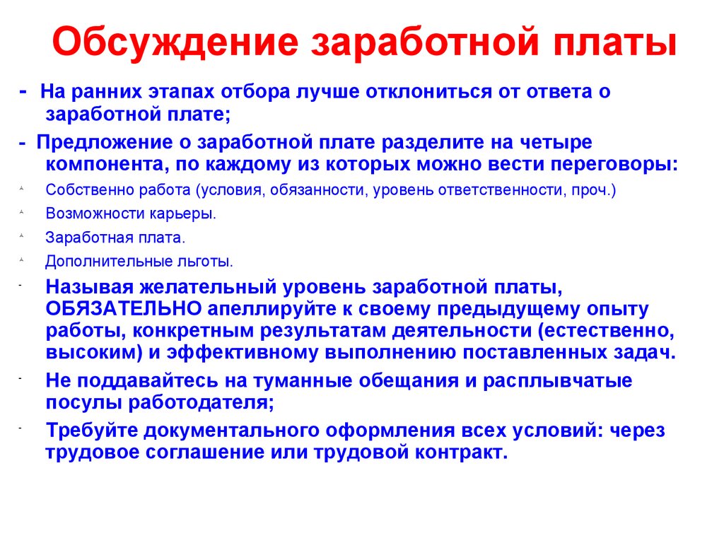 Обсуждение заработной платы- На ранних этапах отбора лучше отклониться от ответа о