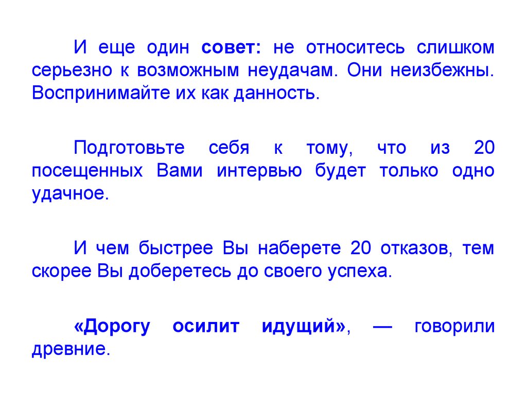 И еще один совет: не относитесь слишкомсерьезно к возможным неудачам. Они неизбежны.