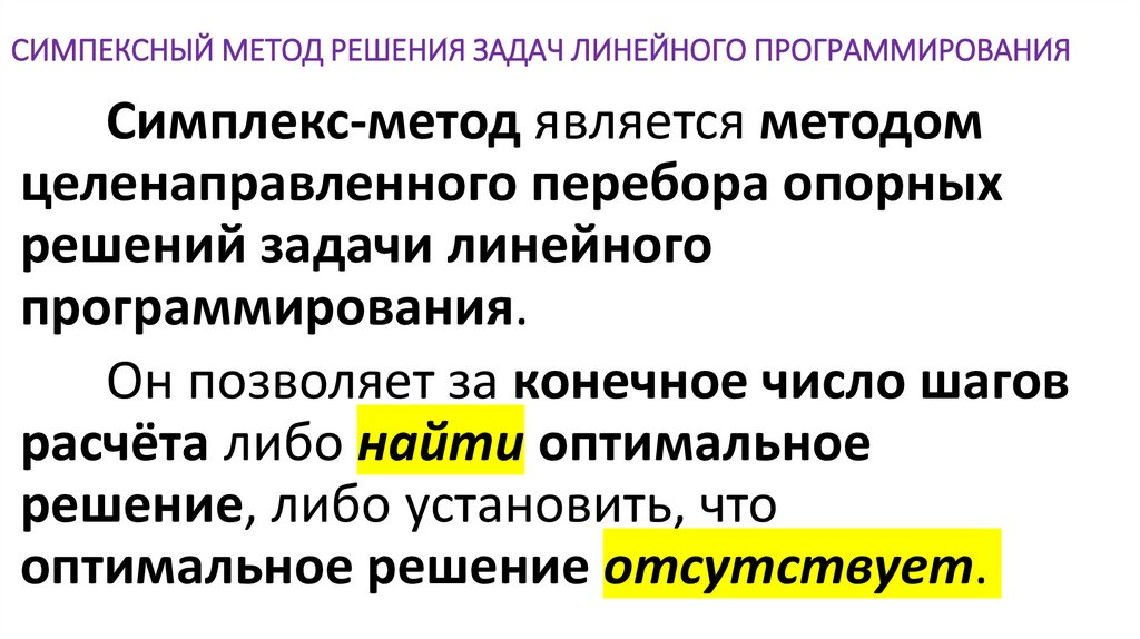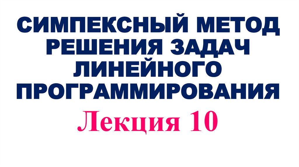 Лекция 102. СИМПЕКСНЫЙ МЕТОД РЕШЕНИЯ ЗАДАЧ ЛИНЕЙНОГО ПРОГРАММИРОВАНИЯ