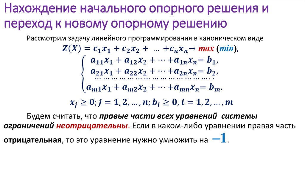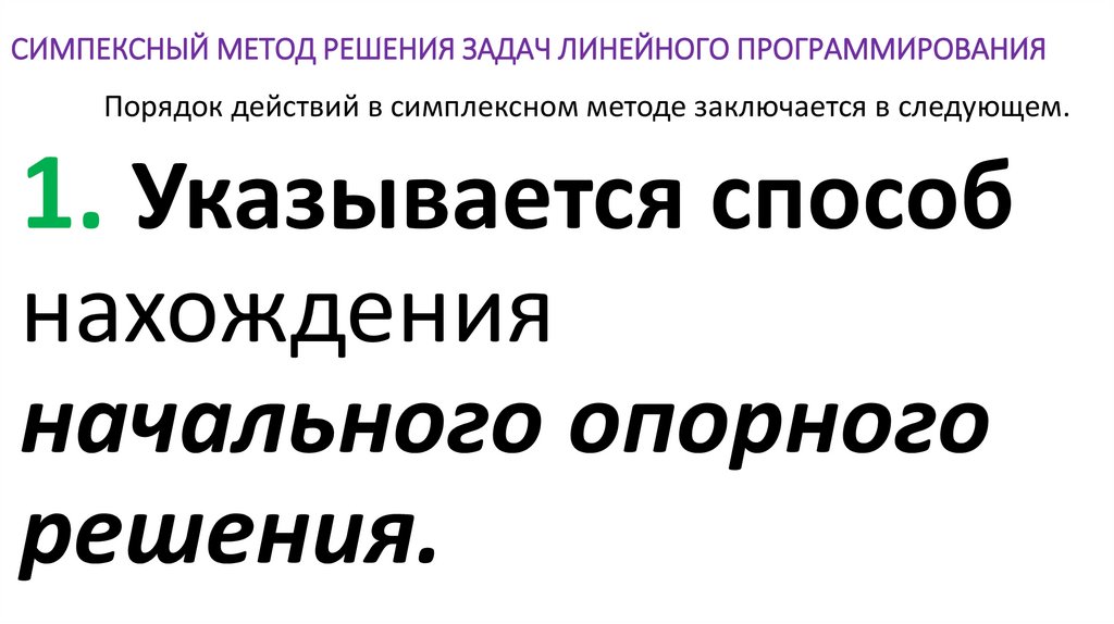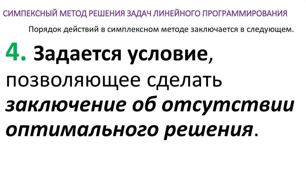 Порядок действий в симплексном методе заключается в следующем.4. Задается условие,