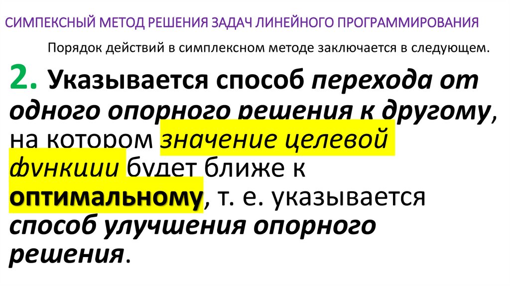 Порядок действий в симплексном методе заключается в следующем.2. Указывается способ перехода от