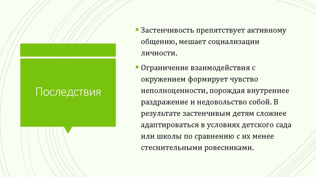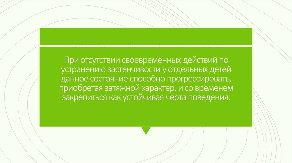 5. При отсутствии своевременных действий по устранению застенчивости у отдельных детей данное состояние способно прогрессировать,