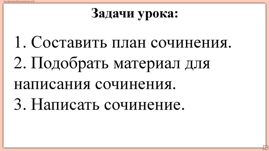 Задачи урока:1. Составить план сочинения.