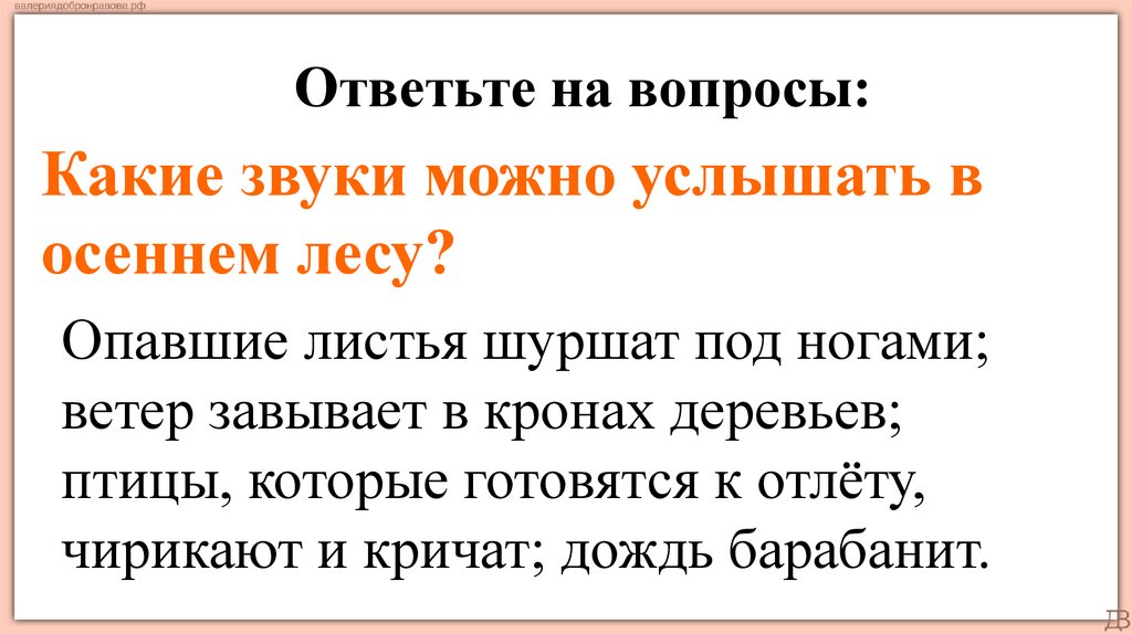Ответьте на вопросы:Какие звуки можно услышать в