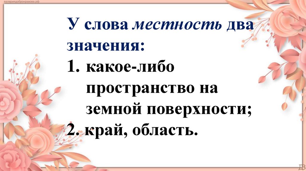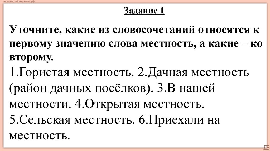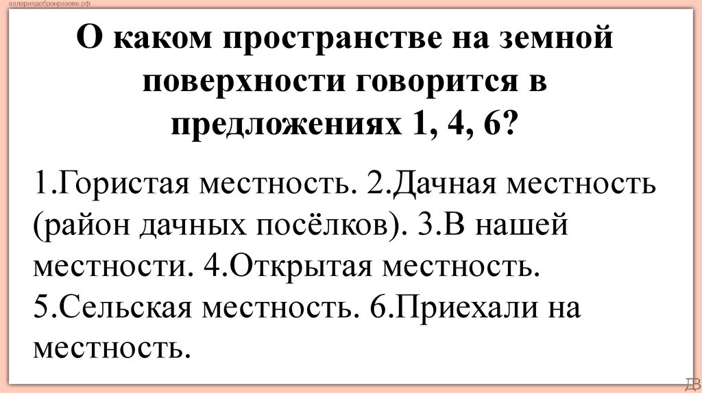 первому значению слова местность, а какие – ко