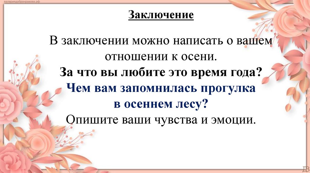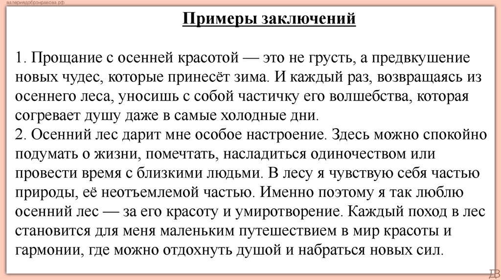 Примеры заключений1. Прощание с осенней красотой — это не грусть, а предвкушение