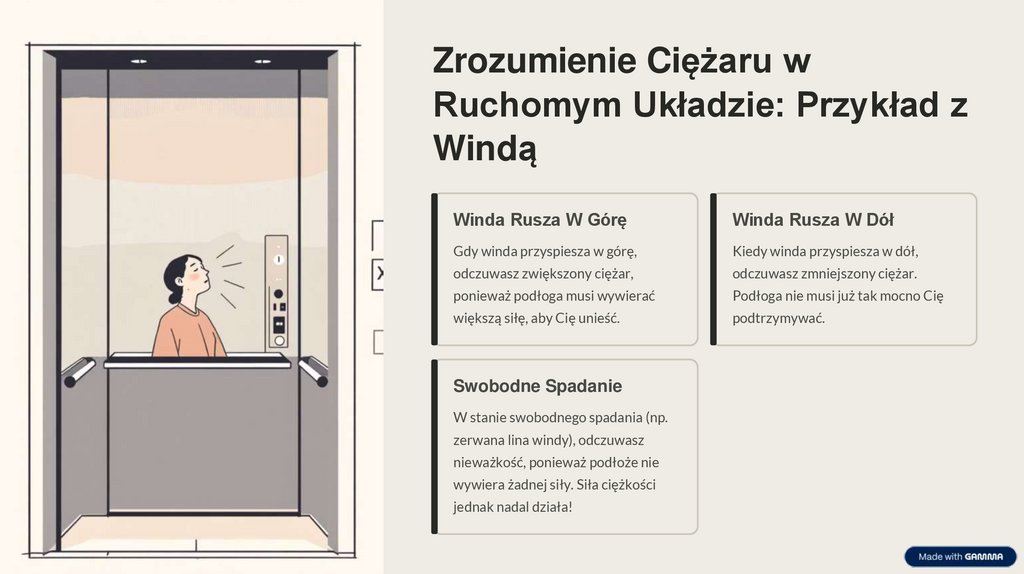 Kiedy winda przyspiesza w dół,