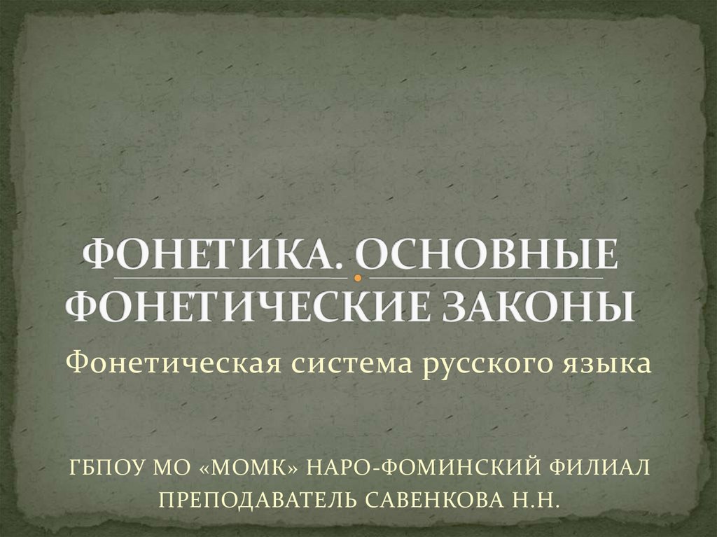 Фонетическая система русского языкаГБПОУ МО «МОМК» НАРО-ФОМИНСКИЙ ФИЛИАЛ