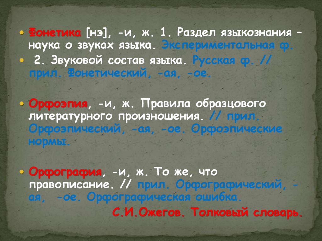 Фонетика [нэ], -и, ж. 1. Раздел языкознания –наука о звуках языка. Экспериментальная ф.