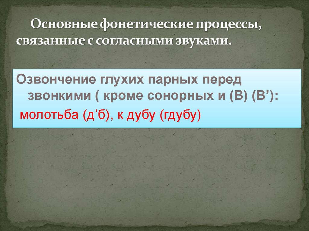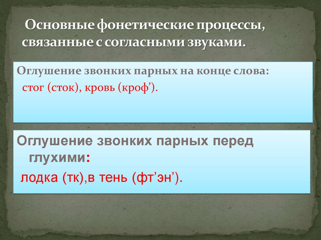 15. Основные фонетические процессы, связанные с согласными звуками.