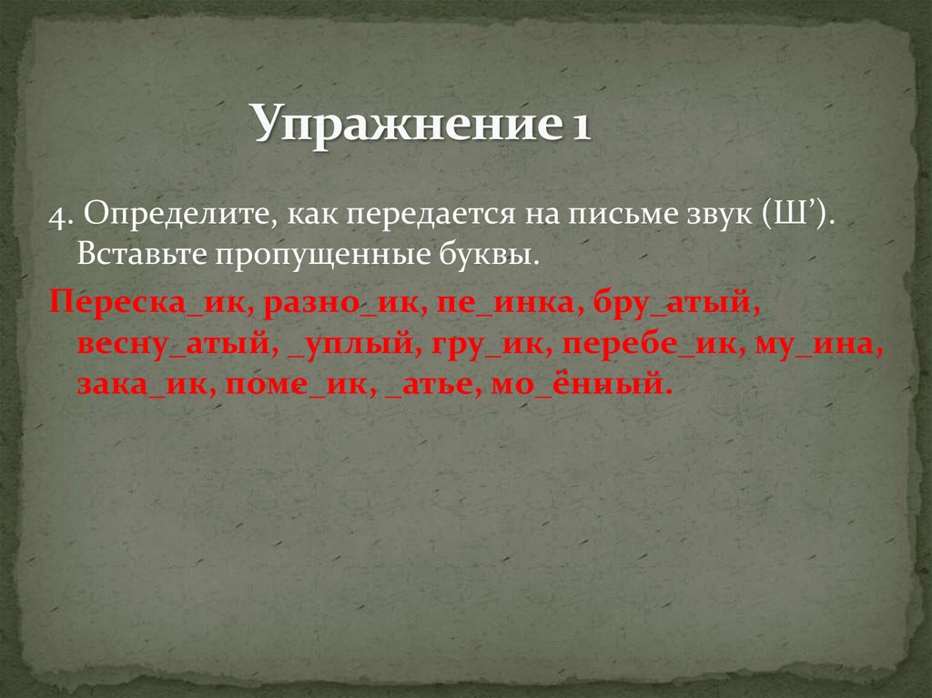 4. Определите, как передается на письме звук (Ш’).Вставьте пропущенные буквы.
