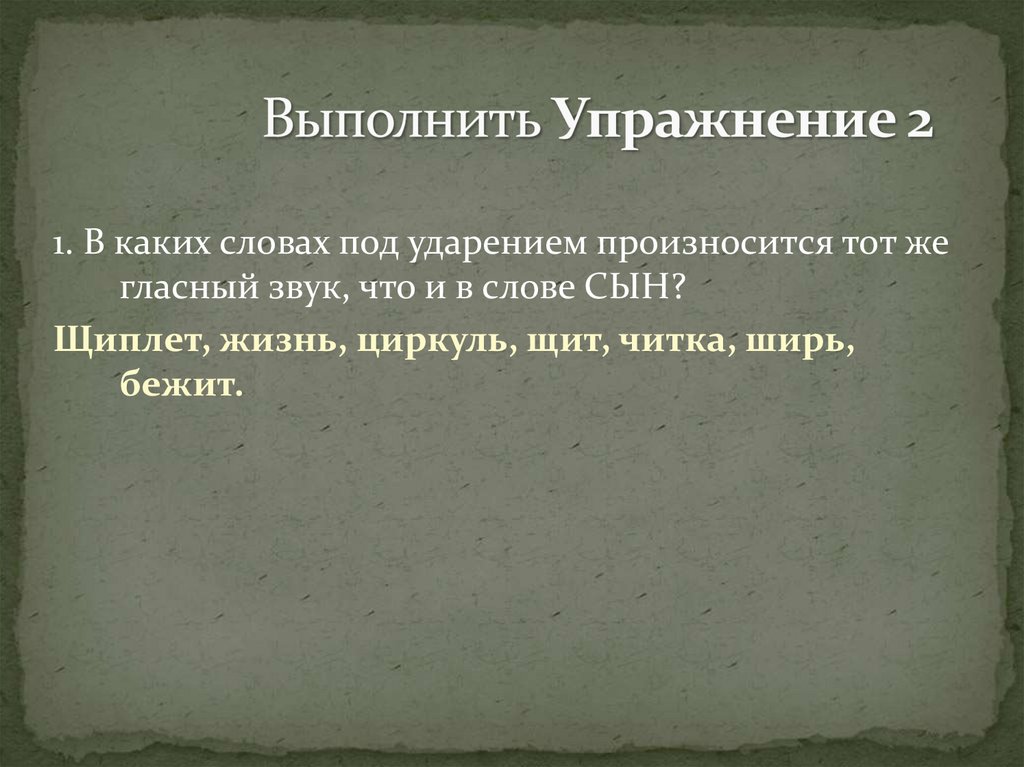 1. В каких словах под ударением произносится тот жегласный звук, что и в слове СЫН?