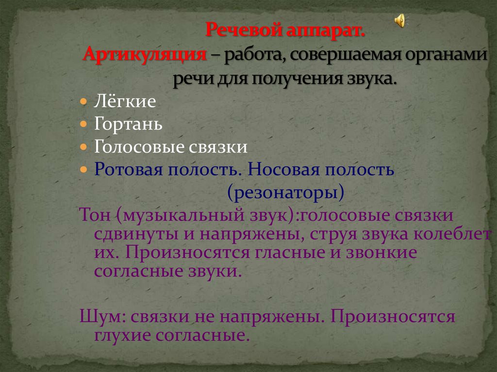 4. Речевой аппарат. Артикуляция – работа, совершаемая органами речи для получения звука.