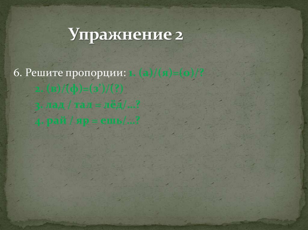 6. Решите пропорции: 1. (а)/(я)=(о)/?2. (в)/(ф)=(з’)/(?)