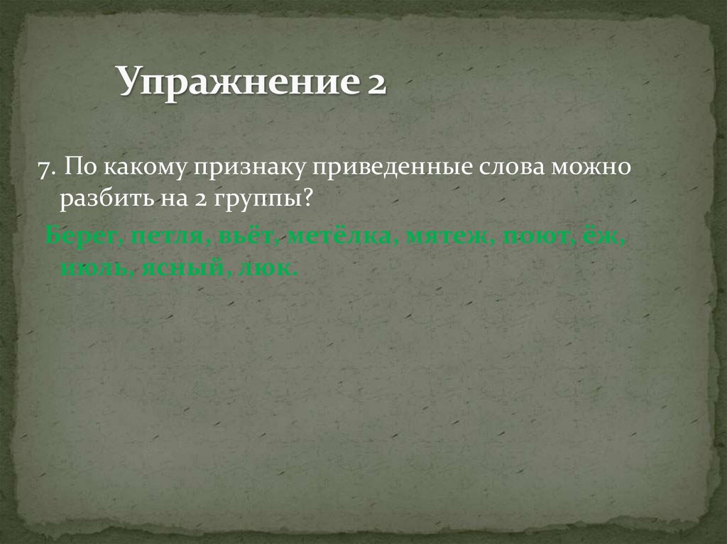 7. По какому признаку приведенные слова можноразбить на 2 группы?